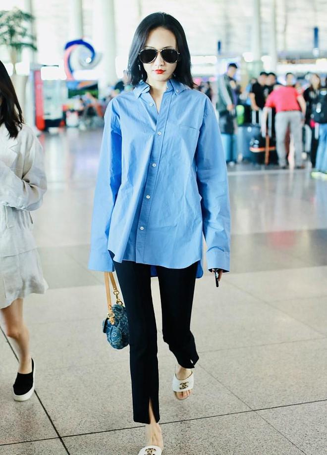 再看王鸥这件蓝色衬衫,这颜色选得真是绝了,是那种清爽的天蓝色,特别显白还不花哨。版型是宽松的 oversized,穿在身上松松垮垮却不拖沓,有一种慵懒随性的感觉,对身材的包容性超强,不管是肩膀宽还是腰上有点肉肉,都能轻松遮住。领口随意解开几颗扣子,露出一点肌肤,既打破了衬衫的正式感,又增添了几分不经意间的小性感,让 “男友风” 衬衫穿出了独属于女性的柔美。