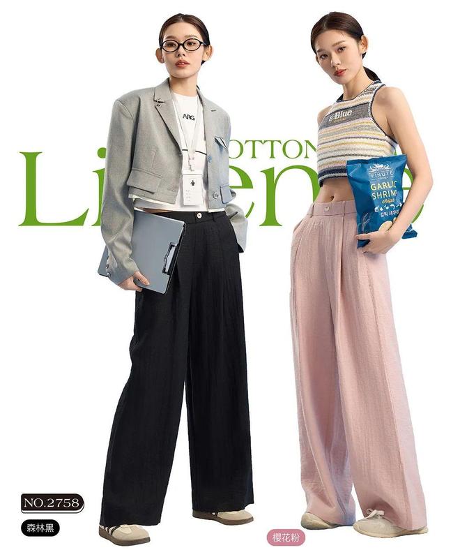 裤子垂顺飘逸,穿上身还不易粘腿起静电,风一吹更不会像普通棉质阔腿裤那样“胀气”: