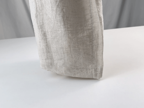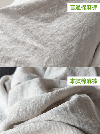 选品组同事还特地拿它跟网上那些价格不一样,但看着差不多的棉麻裤回来对比,发现面料品质真的差好多: