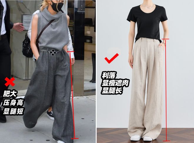无论你是胯宽还是XO型、弯腿都能被妥妥收在阔腿裤型里,双腿变得又细又直~