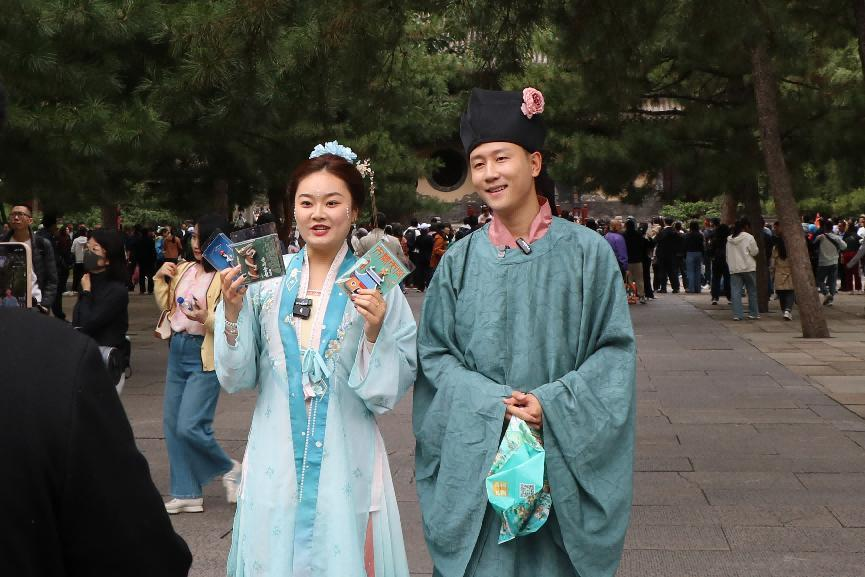 本次活动的亮点之一在于对晋祠深厚历史文化资源的生动阐释与创新表达。“千年侍女 晋祠有约”活动中,讲解员身着宋代服饰,化身彩塑侍女,从静态塑像中“走”出来,向游客娓娓讲述晋祠的历史文化。这种沉浸式讲解打破了传统的单向输出模式,使冰冷的文物变得可亲可感,实现了“让文物活起来”。